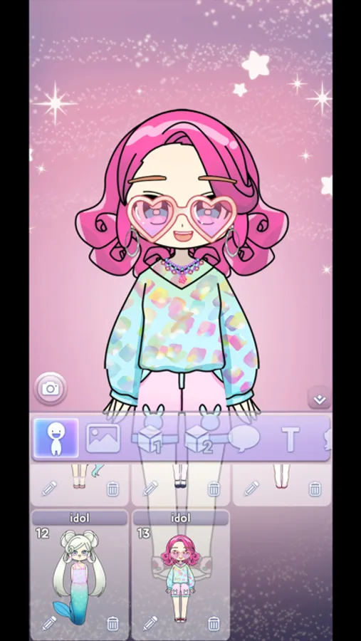 Choose from over 1000+ items, over 35 categories of eyes/eyebrows/hairstyles/tops/bottoms/background to decorate your special fashion star.