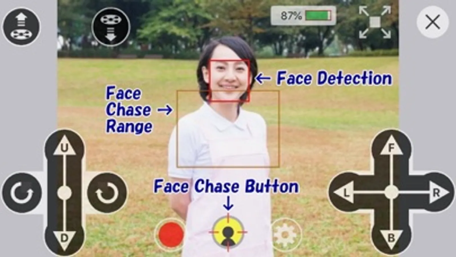 In addition to regular flight operations, "Face Chase" function by detecting your face via Tello's camera is equipped. You can save the camera image as a video, and can export the saved video file via "File" app.