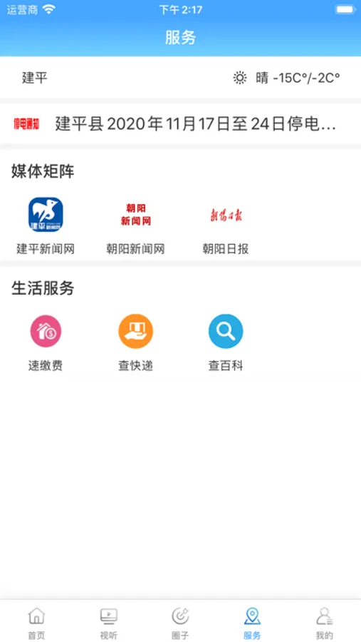 建平融媒APP是由建平县融媒体中心管理运营的新闻客户端,其功能除了进行广播电视的实时播放和直播外,还包括“互联网+新闻”、“互联网+政务”“互联网+服务”“互联网+民生”“互联网+商业”等内容。其中新闻频道整合中央、省市、本地以及网络媒体资源,推出文、图、影、音融合的资讯内容;政务频道设置“掌上政务”模块,打造政务矩阵,实现网上办公;服务频道通过“智慧社区”“监督平台”“行风热线”“不吐不快”等模块为群众提供便民服务和诉求平台,同时,叠加“出行助手”和“生活百科”等内容,实现查询、购物多项功能;此外还开设了“智慧党建”“文明实践”等特色版块,打造全民参与、全面分享、全民受益”的区域第一移动门户。