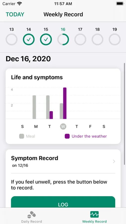 ・ In "Symptom record", you can record the symptom with the button and
