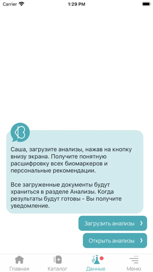 Загрузите результаты анализов в Biogenom. ИИ, совместно с врачами-экспертами, анализируют результаты и предоставляют информацию по Вашему случаю. Сэкономьте время и деньги – Biogenom подскажет к какому врачу обратиться.