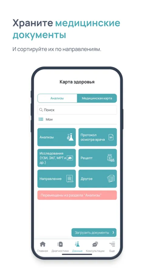 Храните любые медицинские документы и сортируйте их по направлениям.