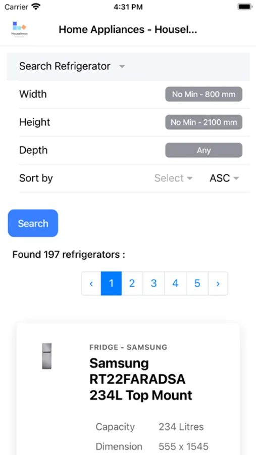 Home Appliances Advisor allow user to easily find right size/capacity or home appliances like fridge / oven / hob .