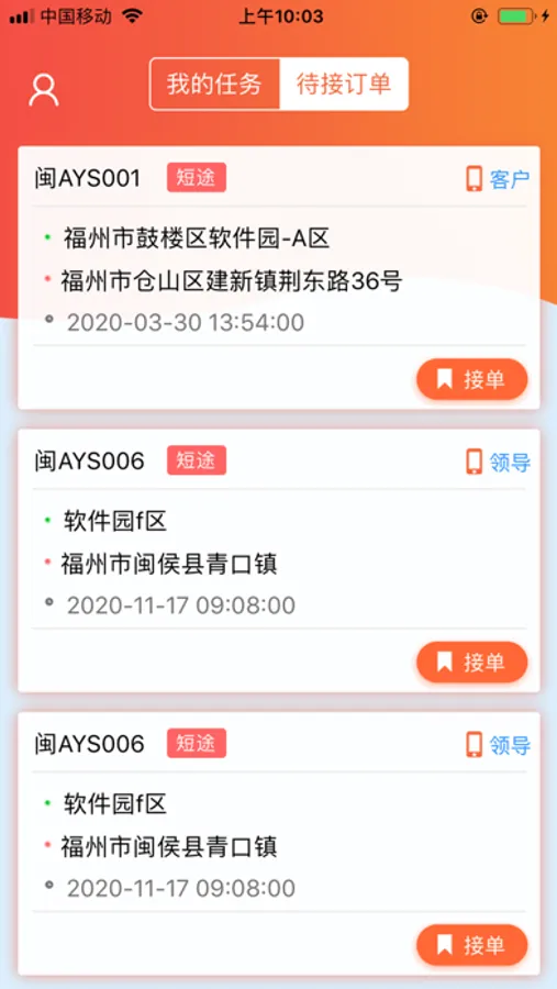 可查询已接订单;