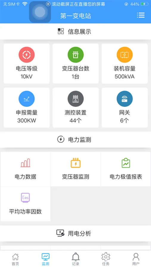 将变配电站中对电力设备、运行环境等监测点通过物联网方式采集的监测数据进行解析、存储,对监测到的实时数据和历史数据进行专业的统计分析。为各级监测维修人员、业主提供直观、便捷、全面的全部监测点运行状态信息。