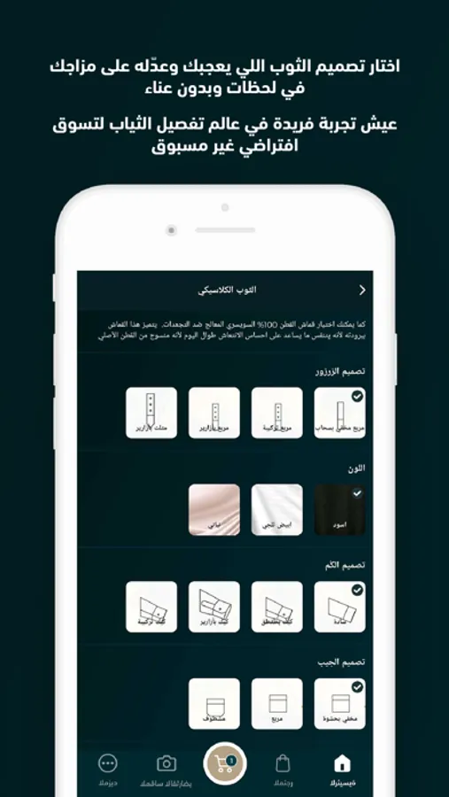 2. اختار: اختار تصميم الثوب اللي يعجبك وعدّله على مزاجك في لحظات وبدون عناء.
