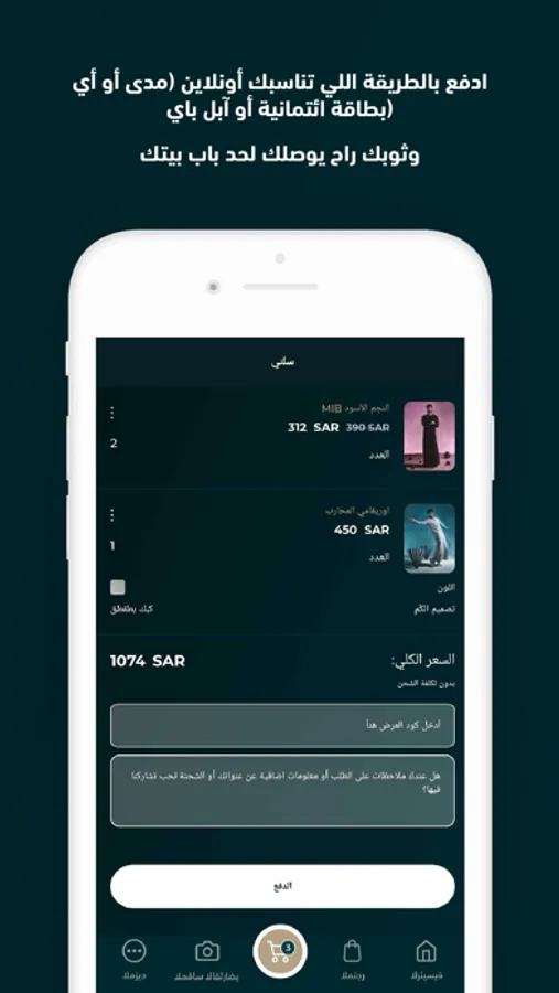 5. استلم: ثوبك راح يوصلك لحد باب بيتك، وإذا طلبت تعديل بيكون علينا.