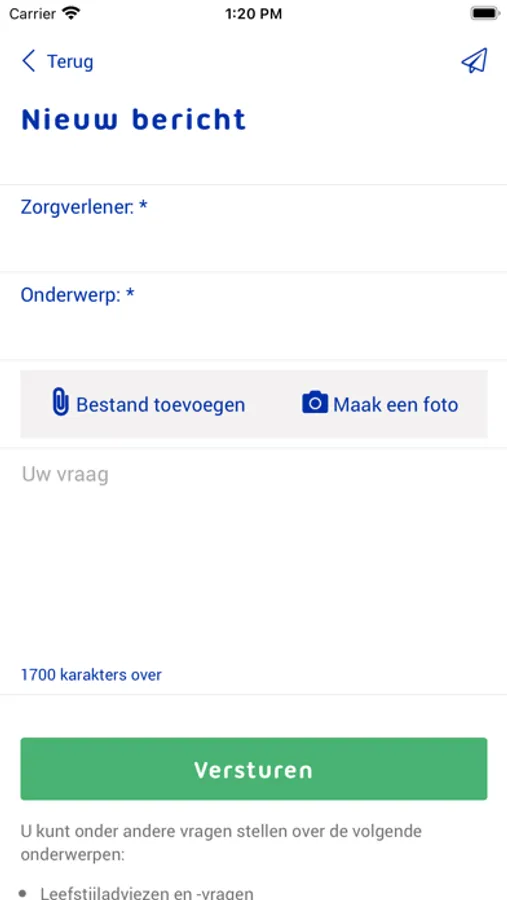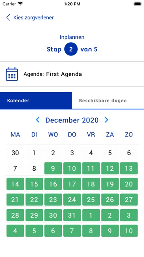 • Bekijk de lege plekken in de agenda van uw arts en boek een afspraak op het moment dat het u uitkomt. U moet tevens de reden van uw afspraak vermelden.