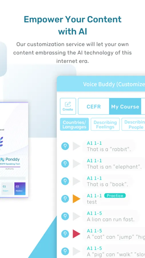 - Customized courses CEFR A1~C2 automatic benchmarking