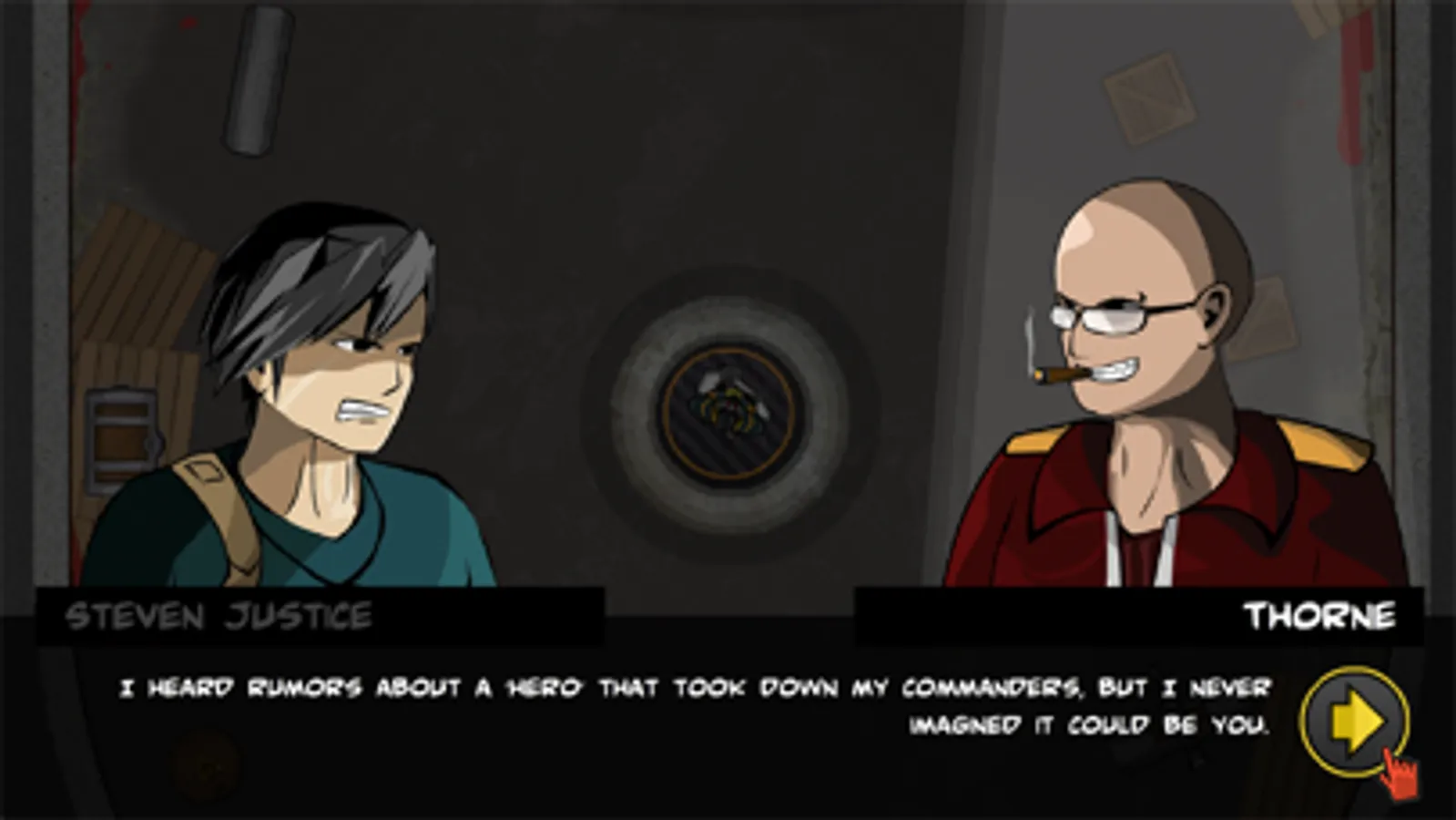 You, a super cop called Mr. Justice, are on a mission to kill Mr. Thorne together your team. During this mission you got into an ambush: all your team mates got lost or were killed. However you were able to escape with a boat to a lost island including a (secret) bunker lair. The game starts here.