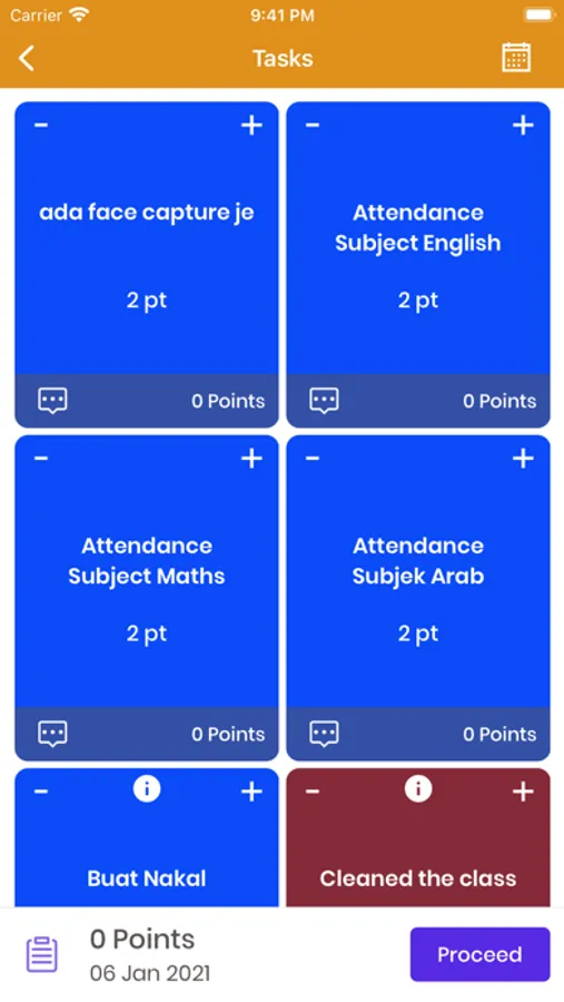 Merits that can be given to students include all positive behavior such as helping teachers, coming early to school, participating in gotong royong, completing homework, reading the Quran and many more. Each school determines its own merits and scores.