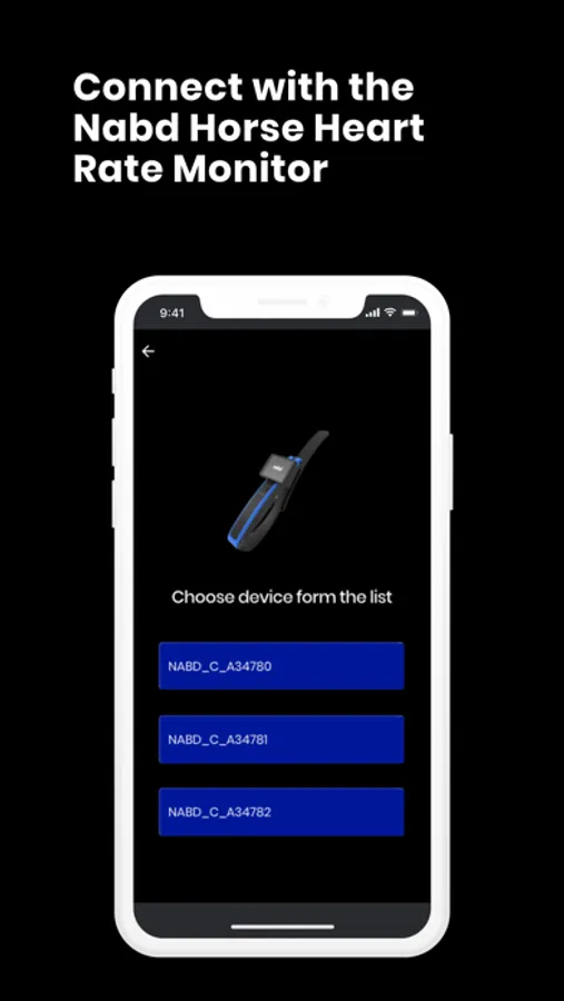 - CONNECT VIA BLUETOOTH TO THE NABD EQUINE HEART RATE MONITOR