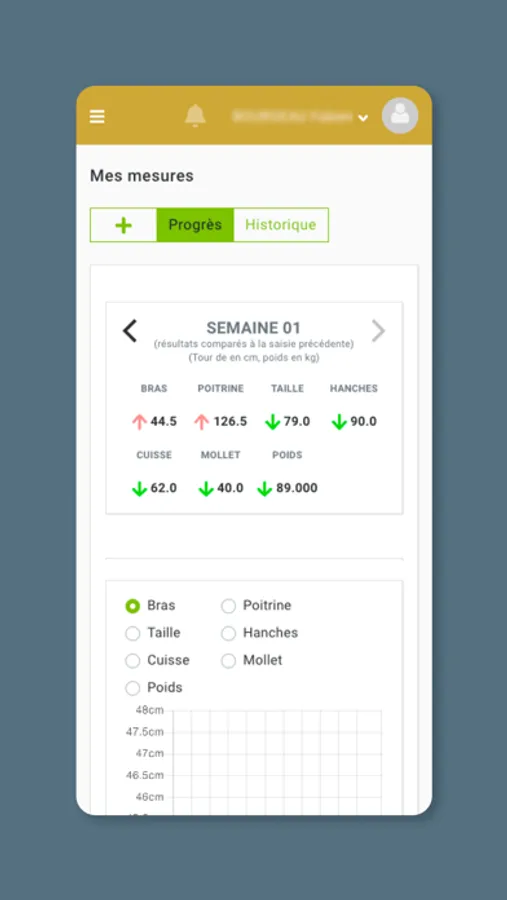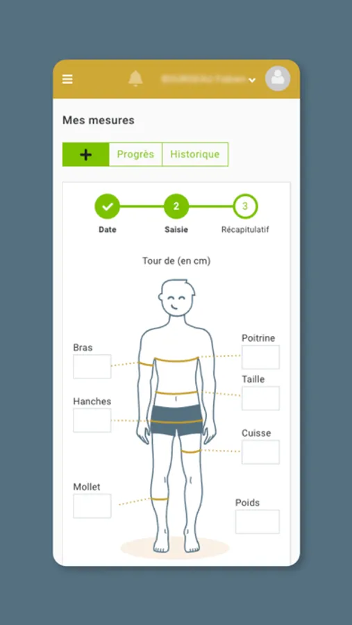 Le suivi de l’évolution des mensurations et du poids au sein de l’application ne dispense pas l’utilisateur de conseils adaptés d’un professionnel de santé. Demandez l’avis d’un médecin avant toute prise de décision médicale.