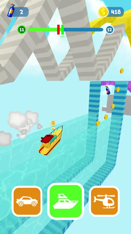 Helicopter, car, or motorboat - choose the required vehicle during the race to come first!