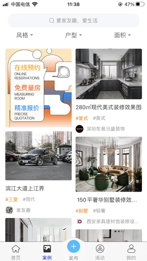 家友趣App以“家”为中心,为您提供一站式生活家居装修服务,提供全方位的新房旧房装修家居知识、案例效果图、省钱攻略、生活常识、工艺流程、装修日记、优惠活动及同城口碑装修公司、家居建材、装修工人等商户预约等服务。家友趣App一站式新房装修服务,找装修公司、找装修工人、找省钱装修、看装修图片、看装修材料、看装修经验等一应俱全!