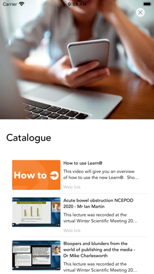 - Browse, filter and search for lectures by keywords, categories, GMC evaluation areas, events and find content specific to trainees