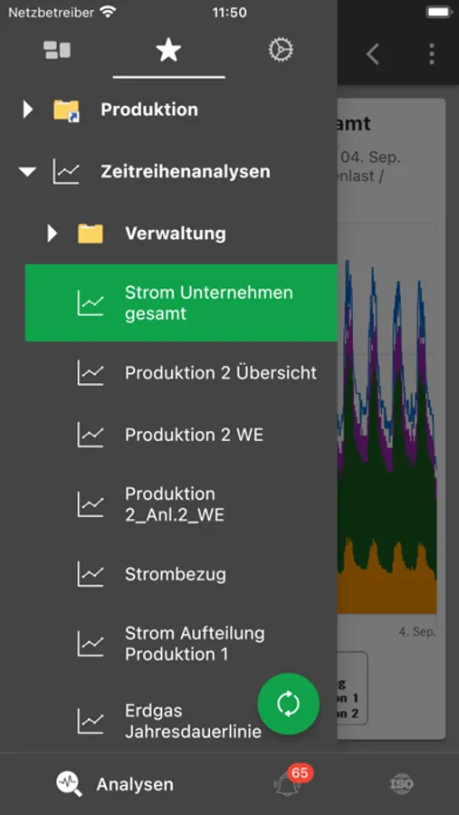 Durch die Übermittlung aller benötigten Messdaten, entsprechend der eingestellten Zeitintervalle, können die Auswertungen auch offline betrachtet und analysiert werden. Diese Funktionalität erlaubt es, in Meetings aussagekräftige und moderne Grafiken mit Energieanalysen zu präsentieren und Einsparpotenziale zu erkennen sowie ISO 50001-Anforderungen zu erfüllen.