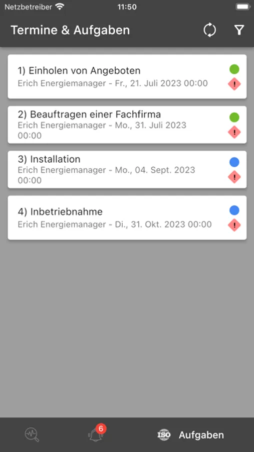 Darüber hinaus können in der App alle vorliegenden System- und EnPI-Alarme (Energiekennzahlen-Überwachung) betrachtet und quittiert werden.