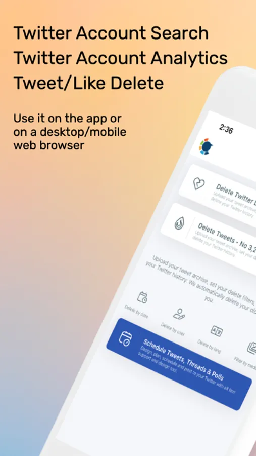 Further, you can also sort your tweets by retweet or Twitter like counts they got. Hence, it becomes possible to keep your top ones while you can erase tweets that you want to get rid of in one go!