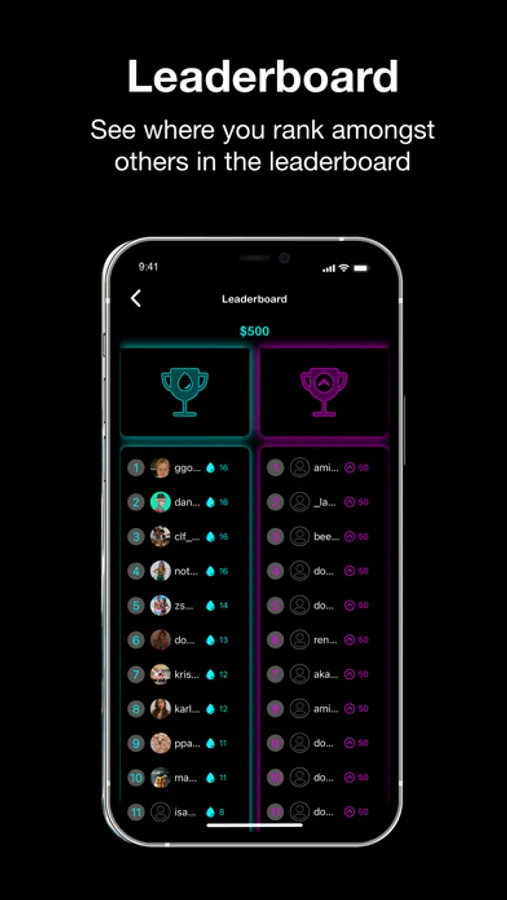 The total reward made available to reward the members will always be more than 50% of what the company made the previous month. This number will be displayed at the top of the “Leaderboard” screen in the app.