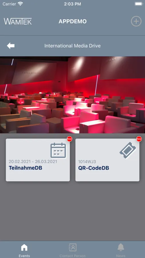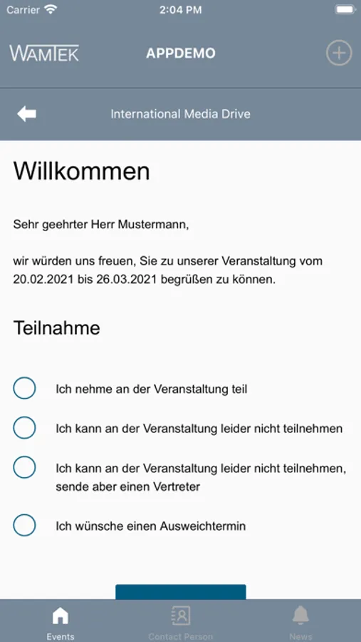 Gäste bekommen einen Registrier-code zugeschickt, mit der sie Veranstalltungsbezogene Daten bekommen