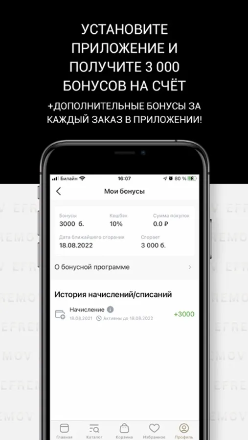 - получите 3 000 бонусов после установки приложения и используйте их на первый заказ;