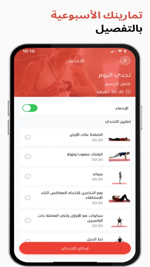 اضفنا مجموعه متنوعة من التحديات عند رغبتك في تمرين سريع أو أداء تمرين معين كتمارين للجزء السفلي أو تمارين البطن