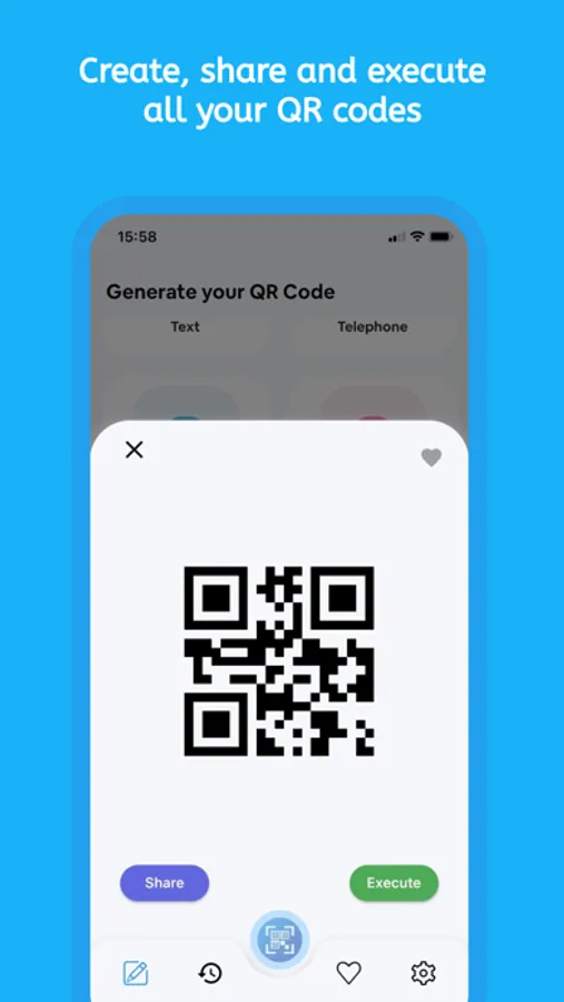 Read any QR code or create colored and beautiful qr codes. You can choose between Website, Text, Email, SMS,Telephone, WhatsApp, Position, Youtube, Ethereum and Bitcoin. However, these QR Codes are not editable or trackable and can be protected with passowrd.