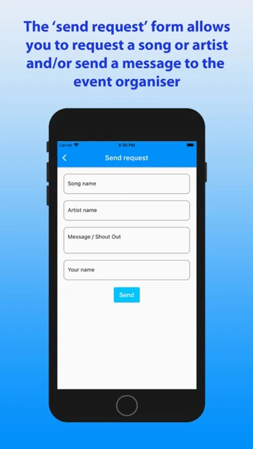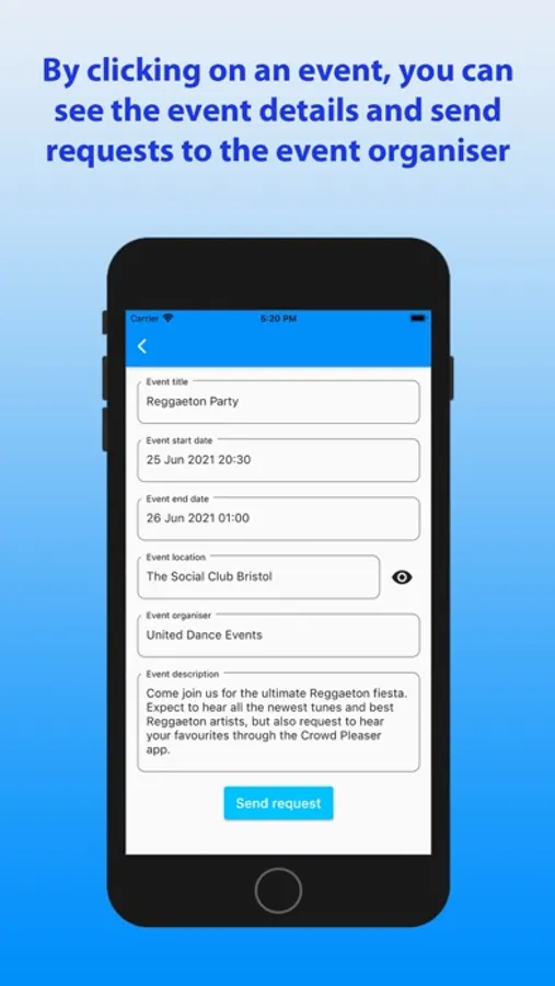 Organisers can list their events on Crowd Pleaser, allowing members of the crowd to send requests to them via the app. The organiser will be notified when a new request is received and will be able to read it in the app.