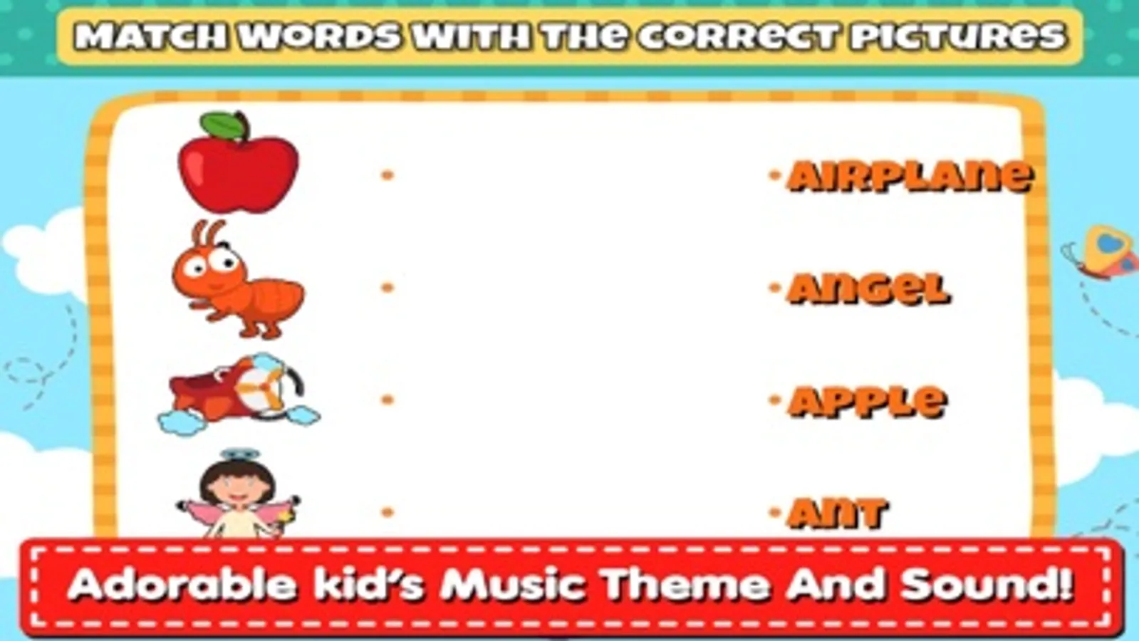 This great word match game is very suitable for kids or who loves word matching games.