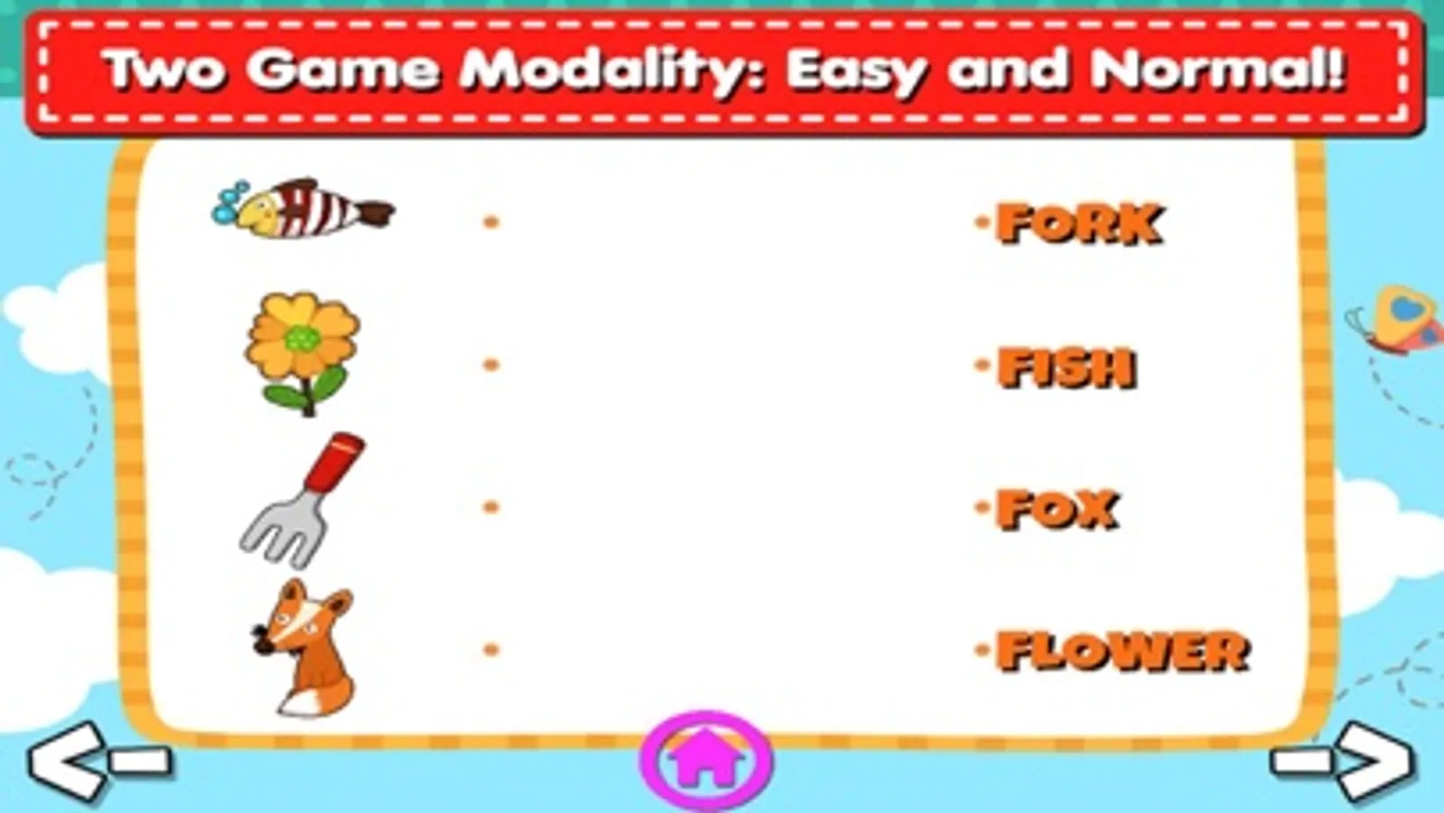 In this mode you have 3 lives and you must match correctly the pictures over the word or you go in game over! So, pay attention!