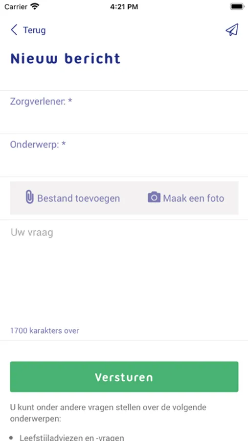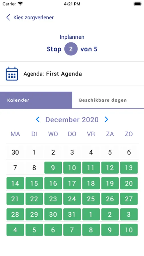 • Bekijk de lege plekken in de agenda van uw arts en boek een afspraak op het moment dat het u uitkomt. U moet tevens de reden van uw afspraak vermelden.