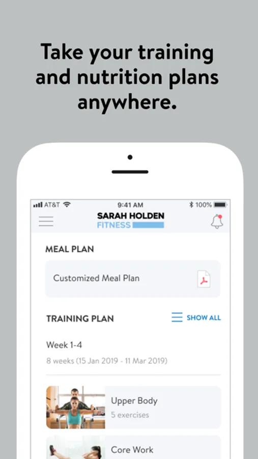 Download the Sarah Holden Fitness app today to browse/purchase fitness programs. Log in for the online coaching platform to: