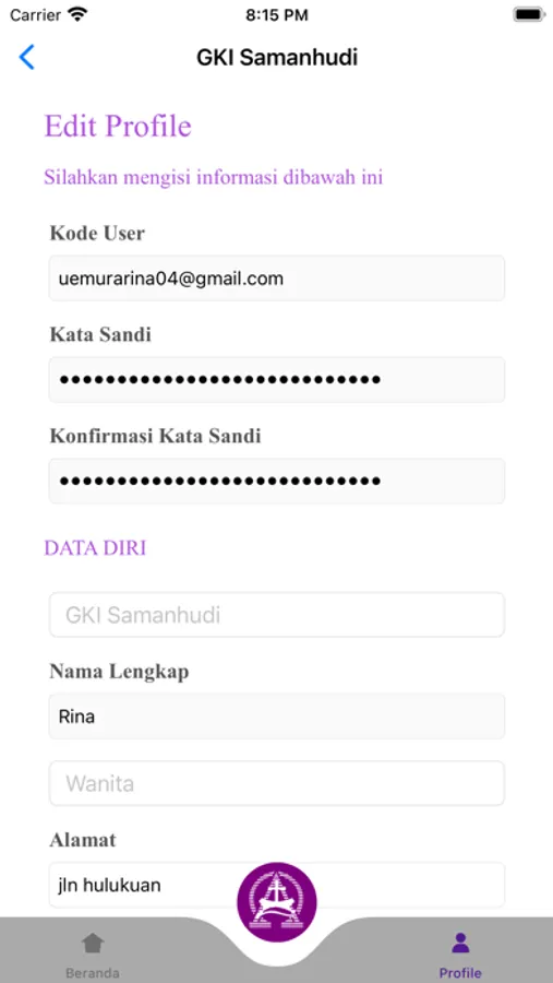 Aplikasi untuk membantu dalam proses pencatatan aktivitas dalam gereja.