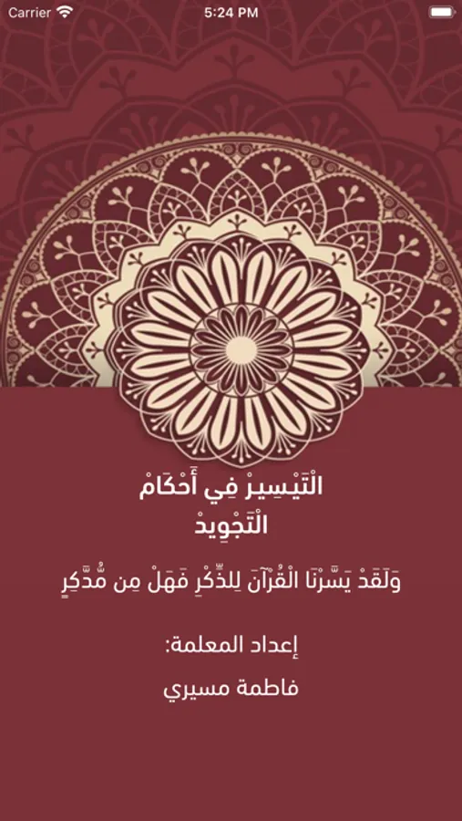 تطبيق رقمي في مقرر التجويد الصف السادس الابتدائي