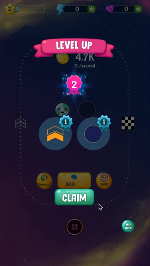 - Buy and Merge planets and upgrade them to the next level to speed up