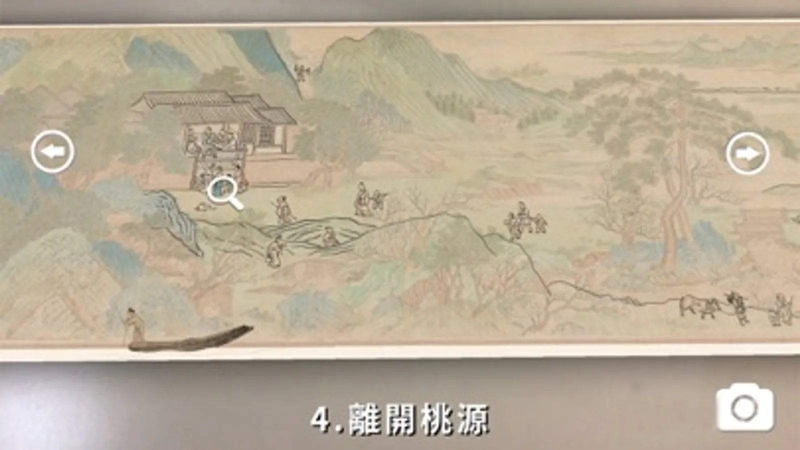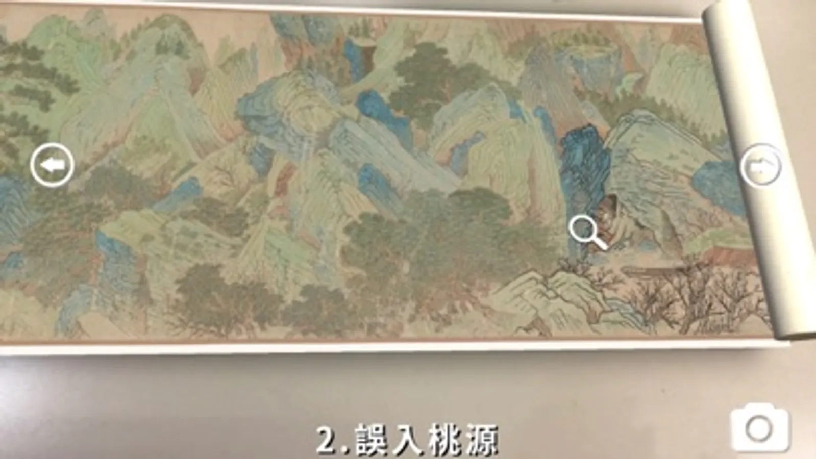 本程式選材自明代畫家仇英所畫的《桃花源圖》,透過AR技術讓大家認識文人內心的理想世界元素,以及作品背後收藏的故事,並讓大家把賞畫心得留在虛擬畫卷上,與古人對照。