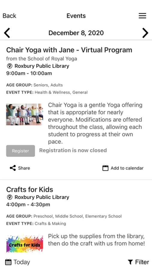 • Find and register for Roxbury Library events, classes and workshops. You can filter events by age and event type