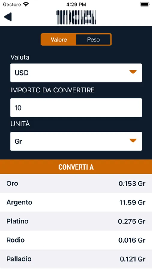A converter and calculator in the same free app allow you to convert currencies (euro, dollar, pound, Swiss franc, and yen) thanks to exchange rates updated in real time and with just one click; also the gram conventions for precious metals (gold, silver, platinum, palladium, and rhodium) can be viewed with just one click.