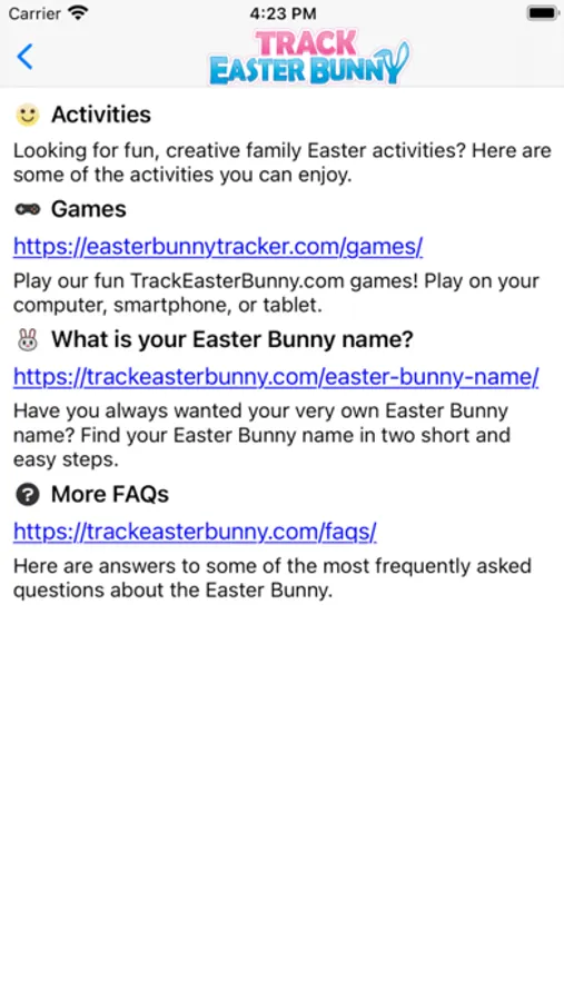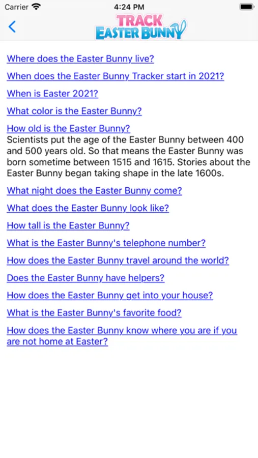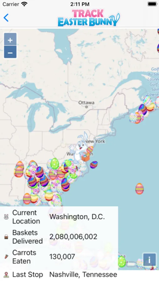 The Easter Bunny Tracker is an app that lets you keep track as the Easter Bunny delivers Easter eggs and candy to the homes of children.