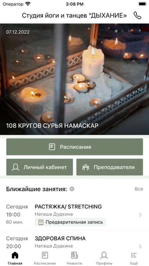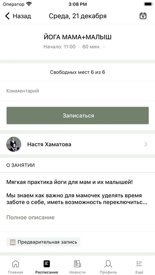 С помощью приложения вы можете записаться на занятие, оплатить его, отслеживать свои занятия по абонементу и оперативно получать информацию об изменениях в расписании и специальных предложениях