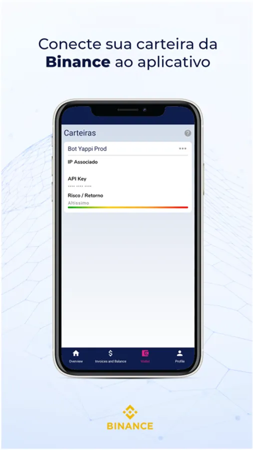 2 - Conecte a Yappi à sua carteira da Binance através da chave API. Não se preocupe, temos um tutorial completo no app explicando esse processo;