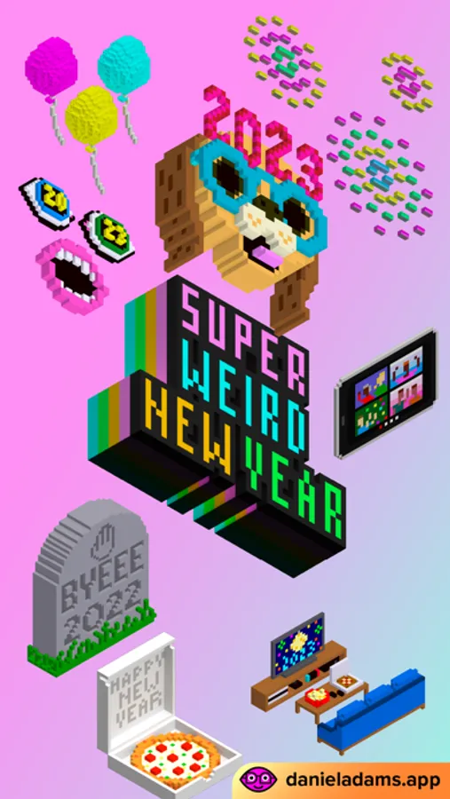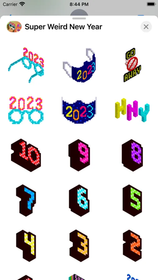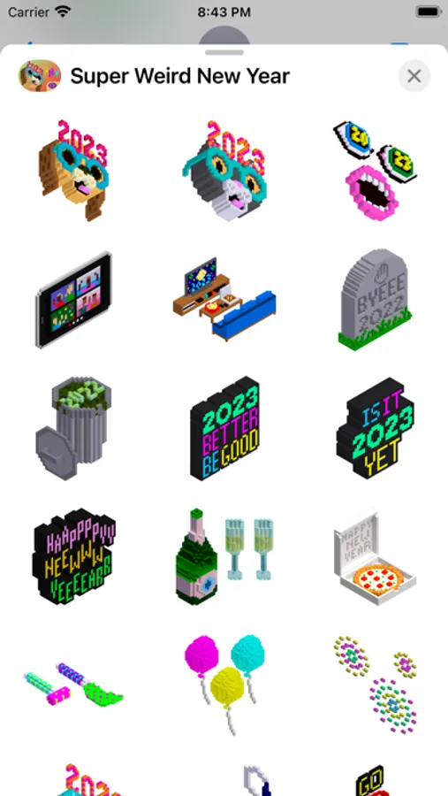 This sticker pack contains several options to add a little weirdness and a little fun to your messages with friends and family as you celebrate the arrival of 2023. This pack also has its original 2021 stickers if you prefer to live in the past.