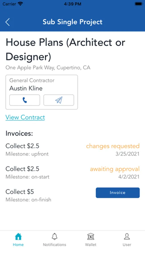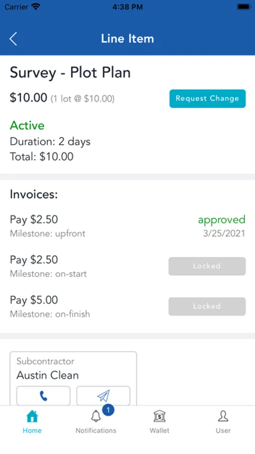 Once the Plan is set and funds are in place, the machine goes to work: Contracts are extended and accepted inside the program, and Subcontractors work exclusively in the app. Contracts, invoices, and change orders are all initiated, executed, and stored in the app—anytime, anywhere, 24/7.