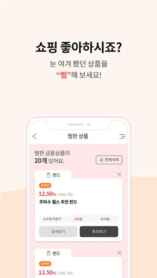 3. "찜" 하기, 기능으로 금융상품도 쇼핑해 보세요.