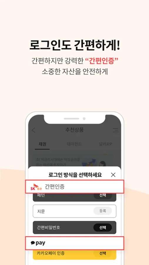 - SK증권이 엄선한 채권, 펀드, 달러RP 등의 상품을 쉽게 추천해 드립니다.