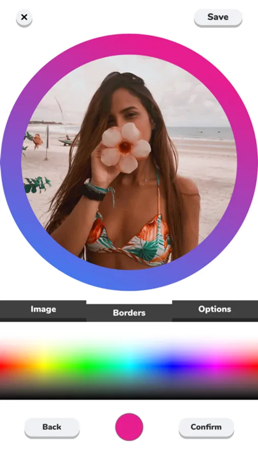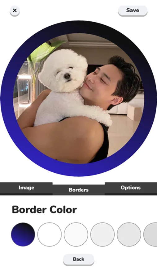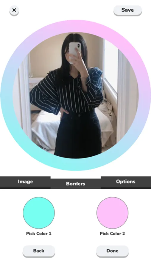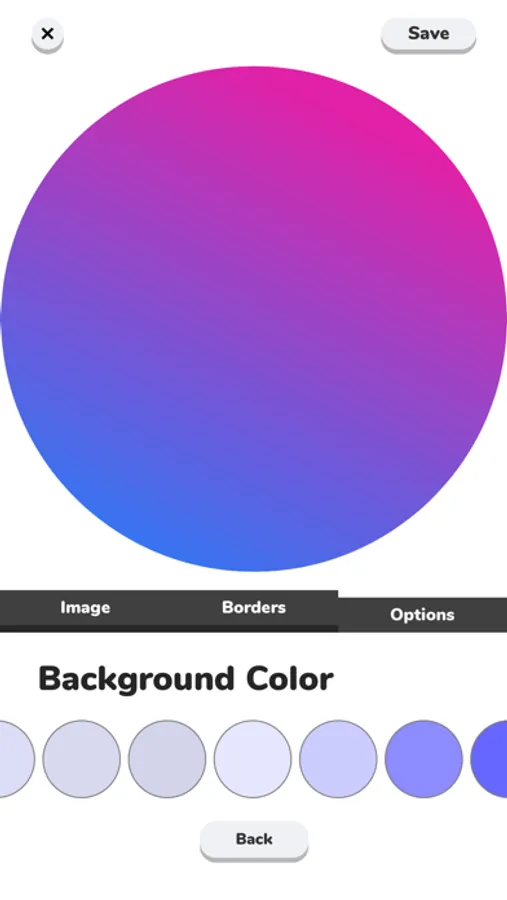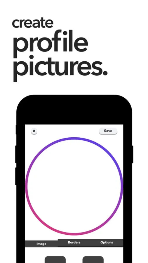 Create profile pictures with personalized borders, colors, width and opacity settings. Add your own text and edit with font and color options. Change your background color and even add multiple images to your profile picture to make creative collages. When finished, tap "Save" in the top right corner to save your final creation into your photo library.