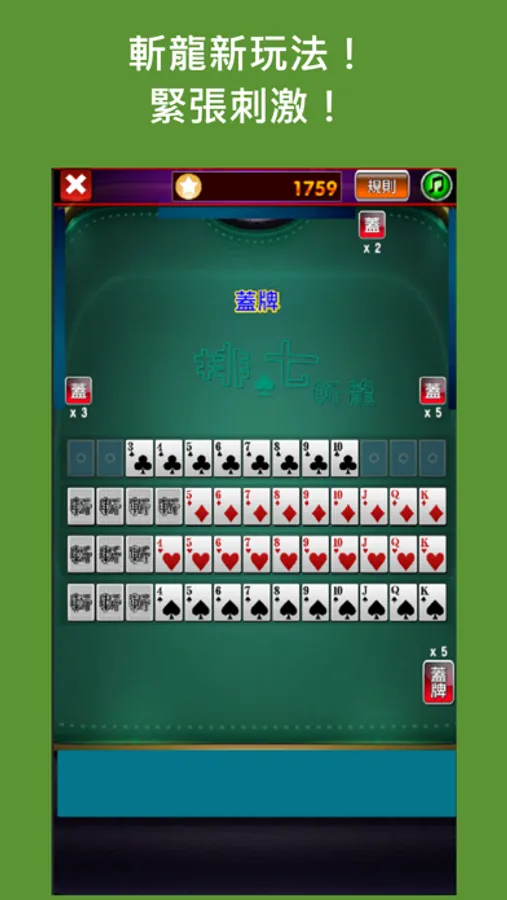 蓋牌時,也不能自斷牌。例如有1.2.6,則6不能先蓋,若有8.J.K,則8不能先蓋。