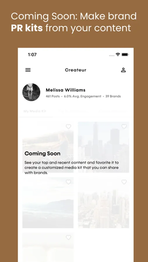 We offer a mobile application for creators to help them pitch their services to brands they love. Unlike other influencer platforms and agencies, we help them collect the content they create, turn that content into professional media kits, and allow them to connect directly with the brands they love.