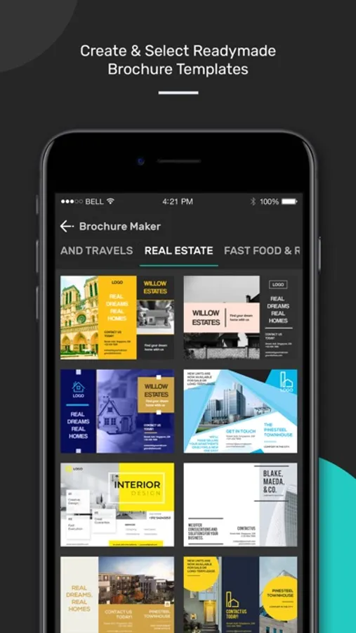Brochure maker app provides tri-fold brochure, two-fold brochure, infographic brochures, product catalog, leaflets, advertising pamphlet, food brochures, restaurant menus, travel brochures, fitness brochures, product brochures, event pamphlets, realestate brochures and more.